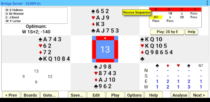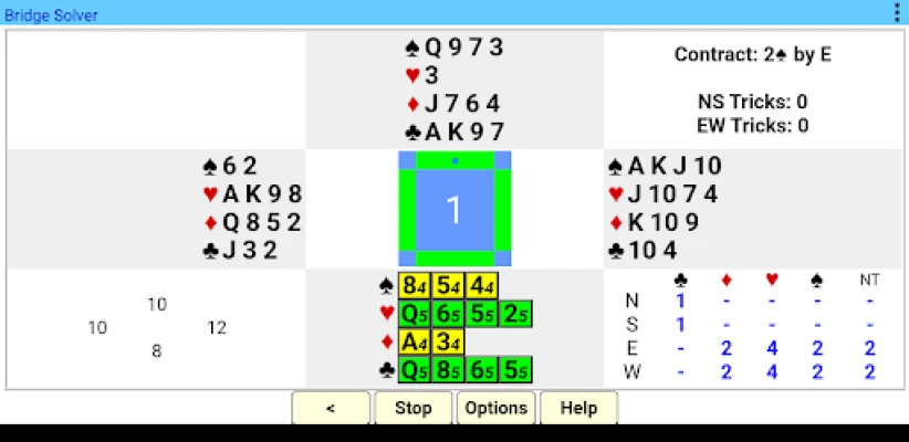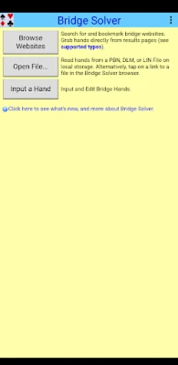 Enhance the experience of browsing session results on bridge websites. Bridge Solver can browse and bookmark websites, and grab hands directly from hand diagrams on web pages hosted on ACBL (several diagram formats, including ACBLmerge, ACBL Common Game, ACBL Live, ACBL Live For Clubs), BridgeWebs, Pianola, Bridge Base Online (movie links), EBU Sims, ECatsBridge Sims, Vugraph.com, Bridge-Club.org, and Altosoft.com.au. Analyse the hands through double dummy analysis or interactive card play.