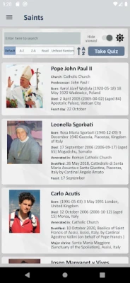 • Quiz Questions: Engage with over 5000 quiz questions based on the lives of Saints, Blessed, and Martyrs.