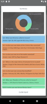 • Enriching Faith and Knowledge: Every question offers an opportunity to reflect on faith, offering insights into Catholic teachings, the lives of saints, and how their stories can inspire your daily life. In addition to quizzes, users can access fun facts and detailed descriptions, learning interesting titbits that may not be widely known.