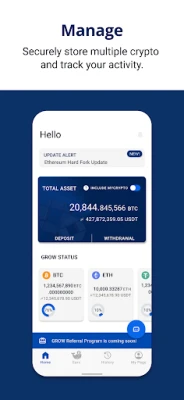 Manage your crypto assets on the GROW App