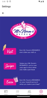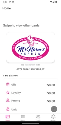 Get the new Mr. Norms Nephew Ice Cream and Frozen Yogurt gift and loyalty app today! Receive loyalty for every purchase and spend it just like cash. Pay with and accrue loyalty funds directly on your phone, and leave your wallet at home! Please stop by for an unforgettable experience: Mr. Norms Nephew Ice Cream and Frozen Yogurt.