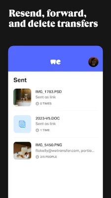 Efficiency: WeTransfer takes the stress out of sharing files. Send documents, videos, photos, and more with just a few taps.